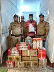 नवीन के कब्जे से कुल 11 पेटी (66 पव्वे मैकडेवल व्हिस्की ,44 पव्वे 8 pm व्हिस्की , 24 बोतल Budweiser बीयर ,72 केन Budweiser बीयर, 19 हाफ मकडेवल विस्की, 33 पव्वे बकाडी लेमन रम ,37 पव्वे रॉयल स्टैग व्हिस्की, 12 बोतल कॅप्टन मॉर्गन रम बरामद हुई है, ऐसा नैनीताल पुलिस ने प्रेस नोट जारी कर बताया है।