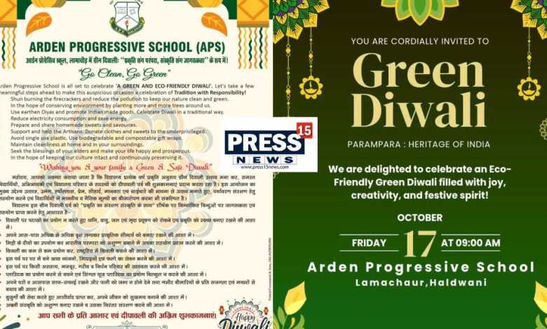 हल्द्वानी, प्रेस 15 न्यूज। ग्रीन दिवाली, पर्यावरण को कम से कम नुकसान पहुंचाते हुए रोशनी के त्योहार को मनाने का एक तरीका है। इसका उद्देश्य सरल है, हमें पर्यावरण और धरती मां को बचाना है, जो हमें सभी प्राकृतिक संसाधन प्रदान करती है। इसी भावना के साथ हल्द्वानी के प्रतिष्ठित आर्डन प्रोग्रेसिव स्कूल ने एक बार फिर नेक पहल की है।