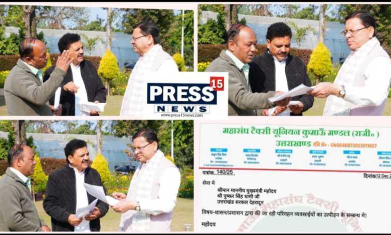इस दौरान महासंघ टैक्सी यूनियन कुमाऊं मंडल के अध्यक्ष ठाकुर सिंह बिष्ट और वरिष्ठ उपाध्यक्ष मनोज भट्ट ने सीएम धामी को एक ज्ञापन भी सौंपा जिसमें सिलसिलेवार अपनी मांगों को रखकर समाधान की मांग की। कहा कि शासन प्रशासन द्वारा लगातार टैक्सी व्यवसायियों का किसी ना किसी रूप मे उत्पीड़न किया जा रहा है, जिसका अब अंत होना चाहिए।